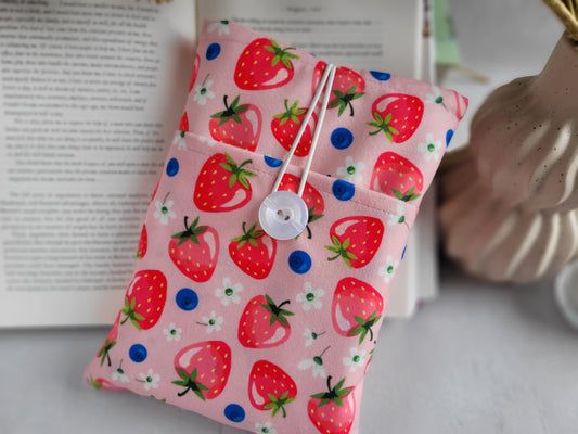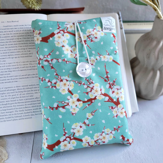 Pochette de livre en tissu vert Cherry Blossom avec poche